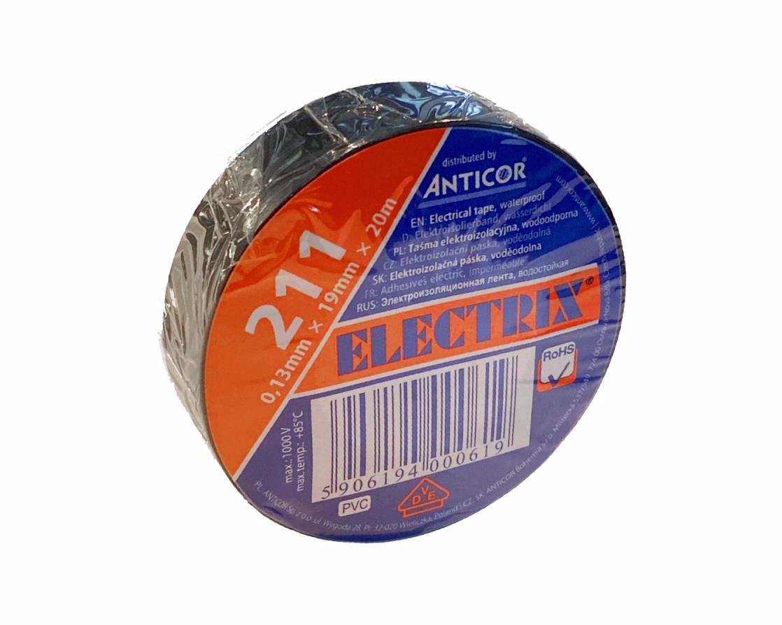 ELECTRIX 211 PVC Electrical Tape. APPLICATION · Wrapping and waterproofing wire harnesses. · Repairing damaged isolations. · Isolation and bundling of wires. · Marking wires by colors. FEATURES AND ADVENTAGES · Weather resistance. · Waterproof. · Self-extinguishing. · High adhesion. · Very flexible, convenient to use. · Excellent electrical insulation. USAGE · Apply to the dry, clean and degreased surface, free from other contaminants. · Optimal application temperature: 10÷400C. · Wrap the tape with min. 50% overlap. · During application use tension and pressure to smooth the tape by hand. STORAGE · To ensure the maximum product performance, store products in a dry, ventilated area in original packaging away from direct sunlight. · Protect the products in original packaging against mechanical damage. · The recommended storage temperature: -5 ÷ 400C.