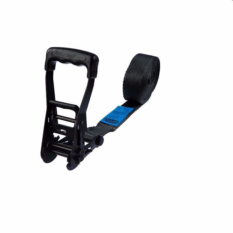 Strong lashing to secure heavy loads with text or logo stamped on the strap! Width: 50 mmLength: 2-10 mDesign: Endless. Yellow chromated ratchet, black polyester strap with stamped text or logo. Breaking strength: 5,000 kgMarking: LC 2000 daN
