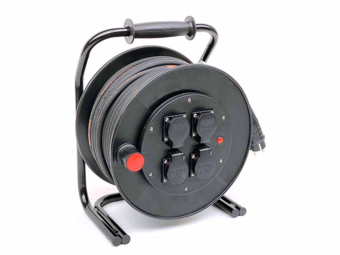 Power reel with 50m titanex 3G2.5 - 4x female schuko chassis - 1x male schuko