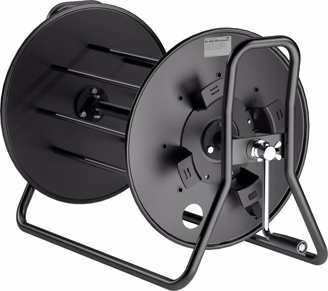 special steel sheet cable drum carriable black colour with RM-cover for winding on both sides with 2-fold axle bearing and swivelling crank