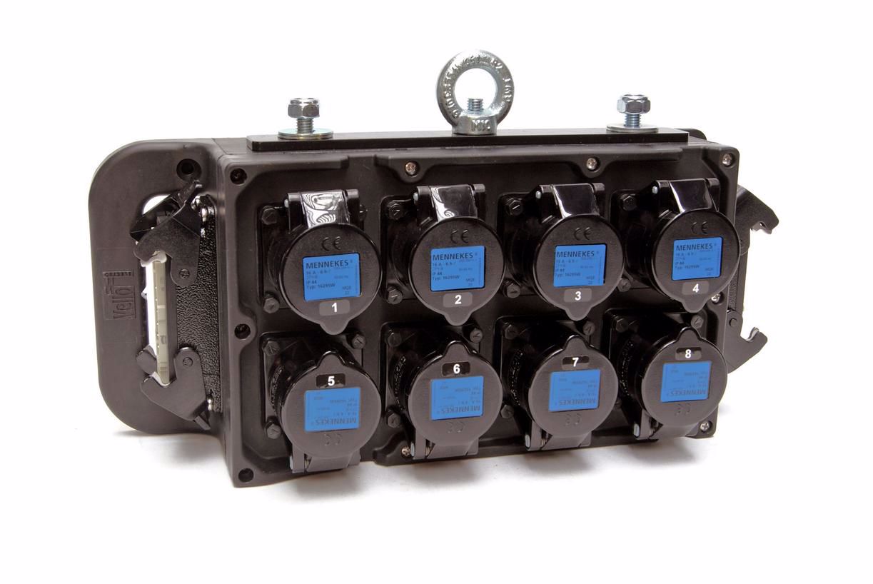 Output 8x Inbouwdoos recht CEE 230V 16A 3p 6h IP44 zwart